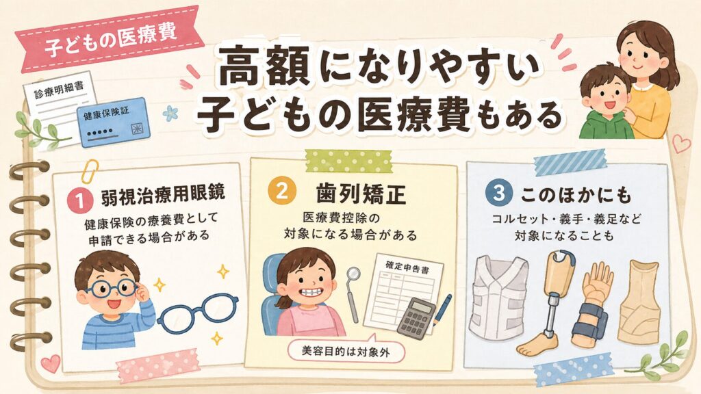子どもの医療費は、病院代そのものだけでなく、眼鏡、矯正、通院費など、思わぬところで負担が大きくなることがあります。